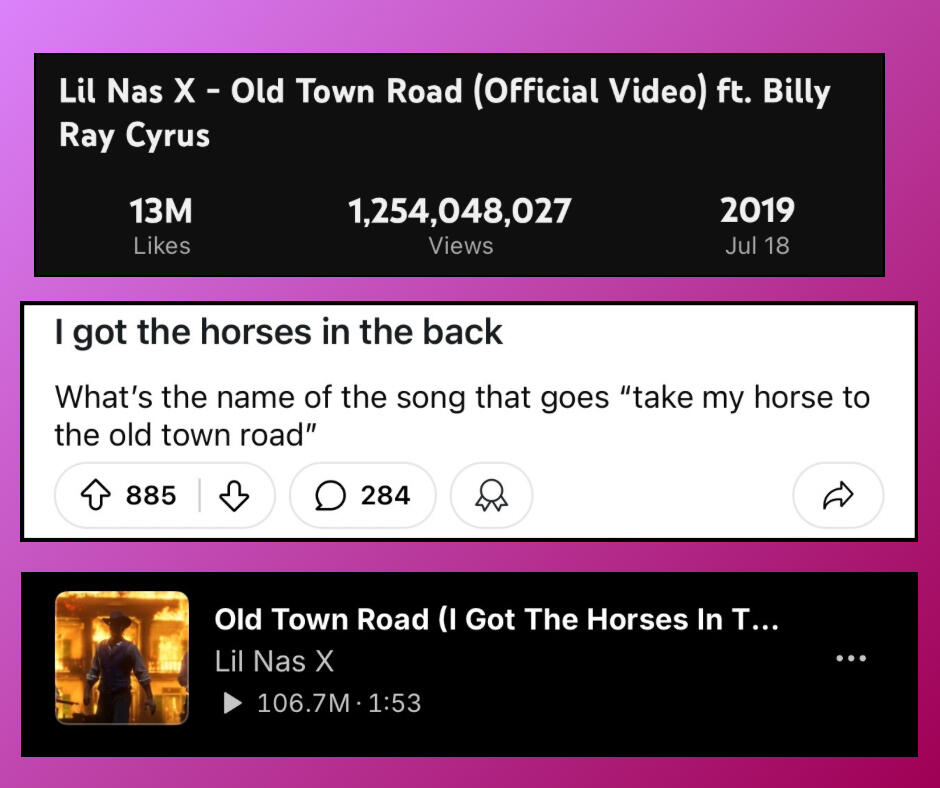 Artists are like failed businesses, spending too much time creating not enough promoting.Lil Nas X was different. He skipped college for "Twitter University"His favorite class? Memes 101But around 30K followers later, he realized the struggle - funny memes got tons of retweets, but his music? Collecting digital dust.So, Nas X flipped the script. He wrote music with memes in mind - the song had to be catchy, short, and funny.Old Town Road was born. And on the December 3rd 2018, Nas paired it with a video of a dancing cowboy and shared it: